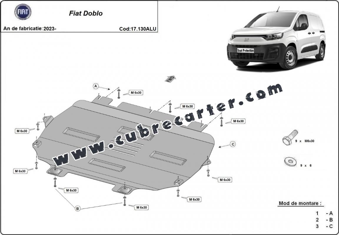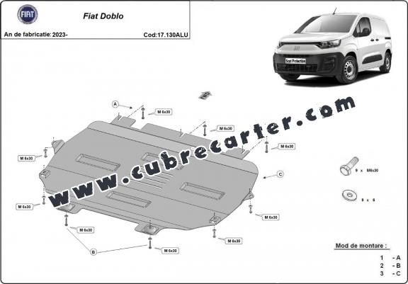 El cubre carter metalico es nuevo y se adapta perfectamente al Fiat Doblo, con las siguientes versiones de motor / accionamiento: toate, fabricado entre 2023 y 2026. La placa protega los siguientes: motor, caja de cambios, radiador, parachoques delantero Está preparado de chapa de Aluminio de 3 mm. Los escudos son de aluminio, pero los soportes de fijación son de acero. Cerrojos, calces y todos los accesorios incluidos. Todas las placas son estrachadas con pintura de polvo anticorrosivo. Las placas del protección del motor son equipados con braceares soldados para resistir mejor a los impactos exteriores. |