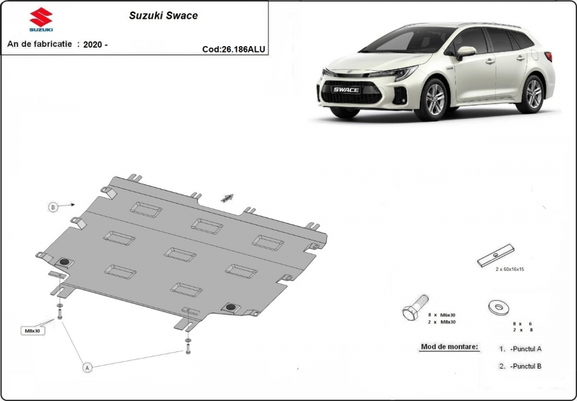El cubre carter metalico es nuevo y se adapta perfectamente a todas las versiones de Suzuki Swace fabricadas entre 2020 y 2026. La placa protega los siguientes: motor, caja de cambios Está preparado de chapa de Aluminio de 3 mm. Los escudos son de aluminio, pero los soportes de fijación son de acero. Cerrojos, calces y todos los accesorios incluidos. Todas las placas son estrachadas con pintura de polvo anticorrosivo. Las placas del protección del motor son equipados con braceares soldados para resistir mejor a los impactos exteriores. |
