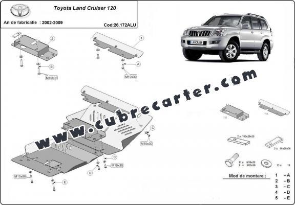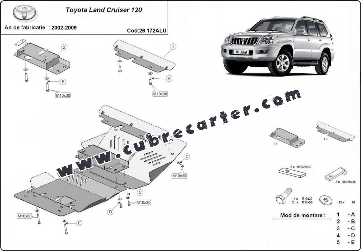 El cubre carter metalico es nuevo y se adapta perfectamente al Toyota Land Cruiser J120, con las siguientes versiones de motor / accionamiento: toate, fabricado entre 2002 y 2009. La placa protega los siguientes: motor, radiador, parachoques delantero Está preparado de chapa de Aluminio de 4 mm. Los escudos son de aluminio, pero los soportes de fijación son de acero. Cerrojos, calces y todos los accesorios incluidos. Todas las placas son estrachadas con pintura de polvo anticorrosivo. Las placas del protección del motor son equipados con braceares soldados para resistir mejor a los impactos exteriores. |