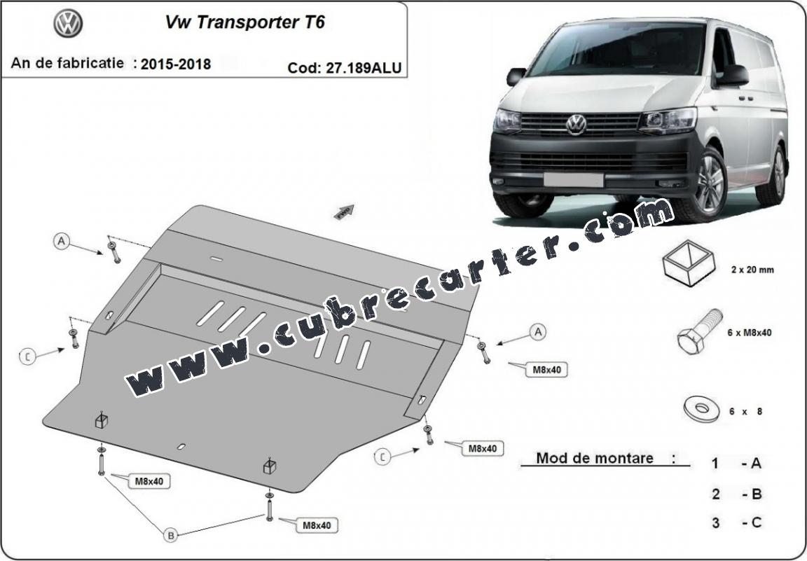 El cubre carter metalico es nuevo y se adapta perfectamente al Volkswagen Transporter T6, con las siguientes versiones de motor / accionamiento: toate, fabricado entre 2015 y 2019. La placa protega los siguientes: motor, caja de cambios, radiador, parachoques delantero Está preparado de chapa de Aluminio de 4 mm. Los escudos son de aluminio, pero los soportes de fijación son de acero. Cerrojos, calces y todos los accesorios incluidos. Todas las placas son estrachadas con pintura de polvo anticorrosivo. Las placas del protección del motor son equipados con braceares soldados para resistir mejor a los impactos exteriores. |