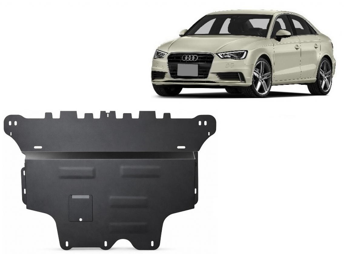 El cubre carter metalico es nuevo y se adapta perfectamente a todas las versiones de Audi A3 fabricadas entre 2012 y 2020. La placa protega los siguientes: motor, caja de cambios, radiador, parachoques delantero Está preparado de chapa de Acero de 2 mm. Cerrojos, calces y todos los accesorios incluidos. Todas las placas son estrachadas con pintura de polvo anticorrosivo. Las placas del protección del motor son equipados con braceares soldados para resistir mejor a los impactos exteriores. |
