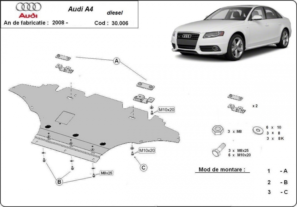 Cubre carter metalico Audi A4 B8 - diesel