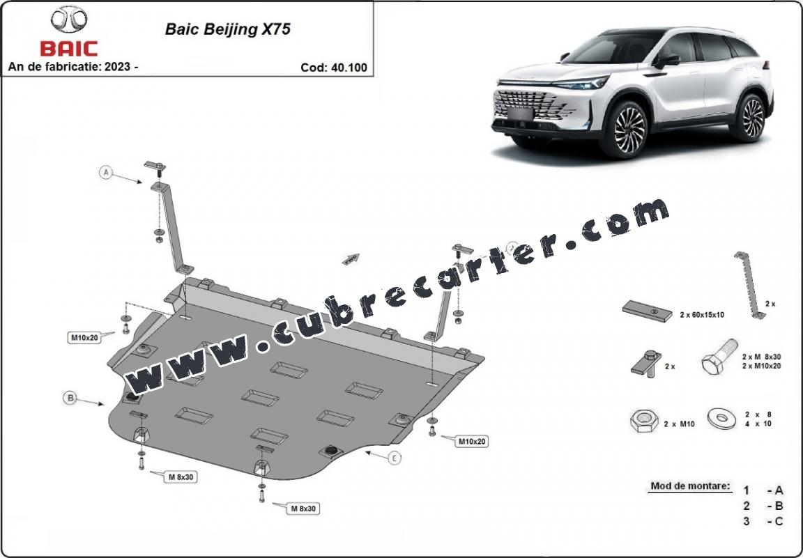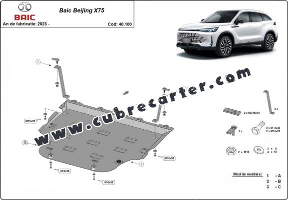 El cubre carter metalico es nuevo y se adapta perfectamente al Baic Beijing X75, con las siguientes versiones de motor / accionamiento: toate, fabricado entre 2023 y 2025. La placa protega los siguientes: motor, caja de cambios, radiador Está preparado de chapa de Acero de 2 mm. Cerrojos, calces y todos los accesorios incluidos. Todas las placas son estrachadas con pintura de polvo anticorrosivo. Las placas del protección del motor son equipados con braceares soldados para resistir mejor a los impactos exteriores. |