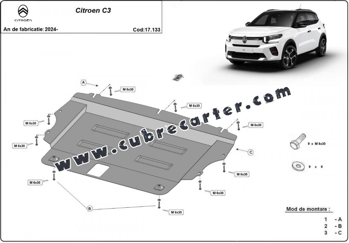 El cubre carter metalico es nuevo y se adapta perfectamente al Citroen C3, con las siguientes versiones de motor / accionamiento: toate, fabricado entre 2024 y 2025. La placa protega los siguientes: motor, caja de cambios Está preparado de chapa de Acero de 2 mm. Cerrojos, calces y todos los accesorios incluidos. Todas las placas son estrachadas con pintura de polvo anticorrosivo. Las placas del protección del motor son equipados con braceares soldados para resistir mejor a los impactos exteriores. |