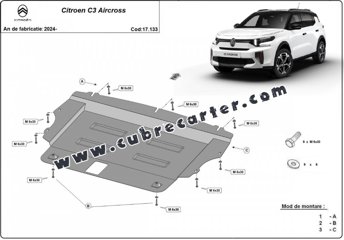 El cubre carter metalico es nuevo y se adapta perfectamente al Citroen C3 Aircross, con las siguientes versiones de motor / accionamiento: toate, fabricado entre 2024 y 2025. La placa protega los siguientes: motor, caja de cambios Está preparado de chapa de Acero de 2 mm. Cerrojos, calces y todos los accesorios incluidos. Todas las placas son estrachadas con pintura de polvo anticorrosivo. Las placas del protección del motor son equipados con braceares soldados para resistir mejor a los impactos exteriores. |