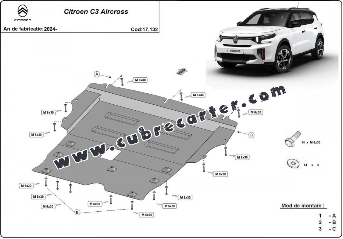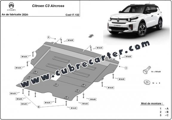 El cubre carter metalico es nuevo y se adapta perfectamente al Citroen C3 Aircross, con las siguientes versiones de motor / accionamiento: toate, fabricado entre 2024 y 2026. La placa protega los siguientes: motor, caja de cambios Está preparado de chapa de Acero de 2 mm. Cerrojos, calces y todos los accesorios incluidos. Todas las placas son estrachadas con pintura de polvo anticorrosivo. Las placas del protección del motor son equipados con braceares soldados para resistir mejor a los impactos exteriores. |