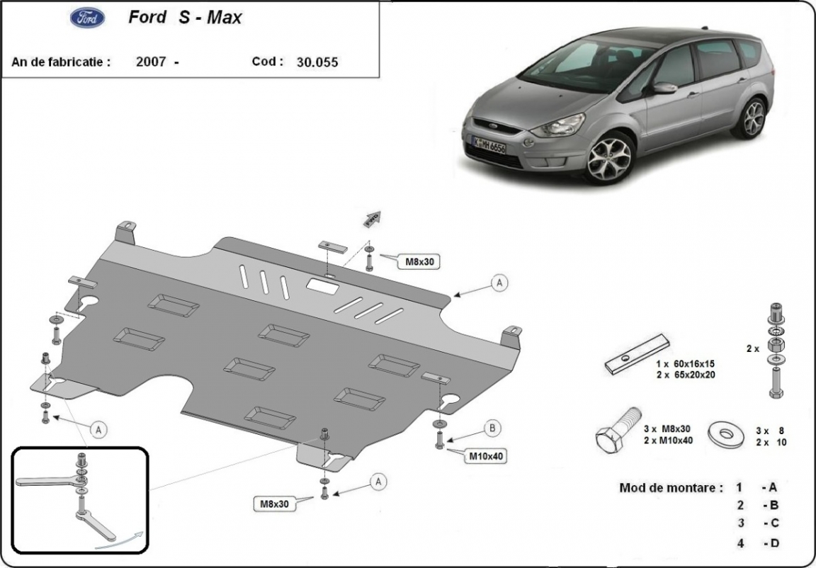 El cubre carter metalico es nuevo y se adapta perfectamente a todas las versiones de Ford S-Max fabricadas entre 2006 y 2015. La placa protega los siguientes: motor, caja de cambios, radiador Está preparado de chapa de Acero de 2 mm. Cerrojos, calces y todos los accesorios incluidos. Todas las placas son estrachadas con pintura de polvo anticorrosivo. Las placas del protección del motor son equipados con braceares soldados para resistir mejor a los impactos exteriores. |