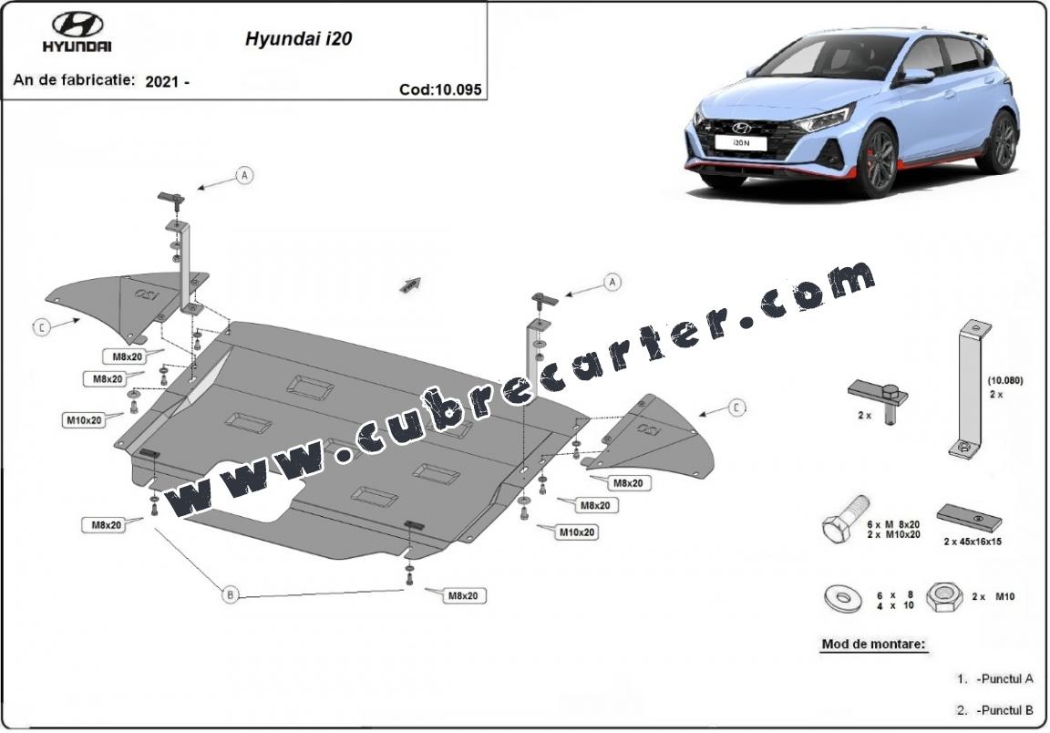 El cubre carter metalico es nuevo y se adapta perfectamente al Hyundai i20, con las siguientes versiones de motor / accionamiento: toate, fabricado entre 2021 y 2026. La placa protega los siguientes: motor, caja de cambios, radiador, parachoques delantero Está preparado de chapa de Acero de 2 mm. Cerrojos, calces y todos los accesorios incluidos. Todas las placas son estrachadas con pintura de polvo anticorrosivo. Las placas del protección del motor son equipados con braceares soldados para resistir mejor a los impactos exteriores. |