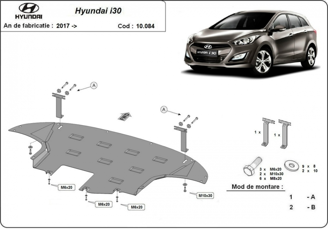 El cubre carter metalico es nuevo y se adapta perfectamente al Hyundai I30, con las siguientes versiones de motor / accionamiento: toate, fabricado entre 2017 y 2026. La placa protega los siguientes: motor, caja de cambios, radiador, parachoques delantero Está preparado de chapa de Acero de 2 mm. Cerrojos, calces y todos los accesorios incluidos. Todas las placas son estrachadas con pintura de polvo anticorrosivo. Las placas del protección del motor son equipados con braceares soldados para resistir mejor a los impactos exteriores. |