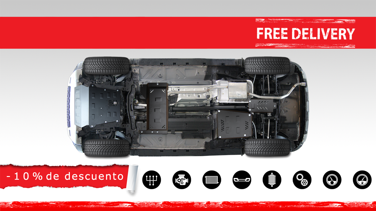 El cubre carter metalico es nuevo y se adapta perfectamente al Lada Niva, con las siguientes versiones de motor / accionamiento: toate, fabricado entre 1995 y 2020. La placa protega los siguientes: motor, caja de cambios Está preparado de chapa de Acero de 2,5 mm. Cerrojos, calces y todos los accesorios incluidos. Todas las placas son estrachadas con pintura de polvo anticorrosivo. Las placas del protección del motor son equipados con braceares soldados para resistir mejor a los impactos exteriores. |