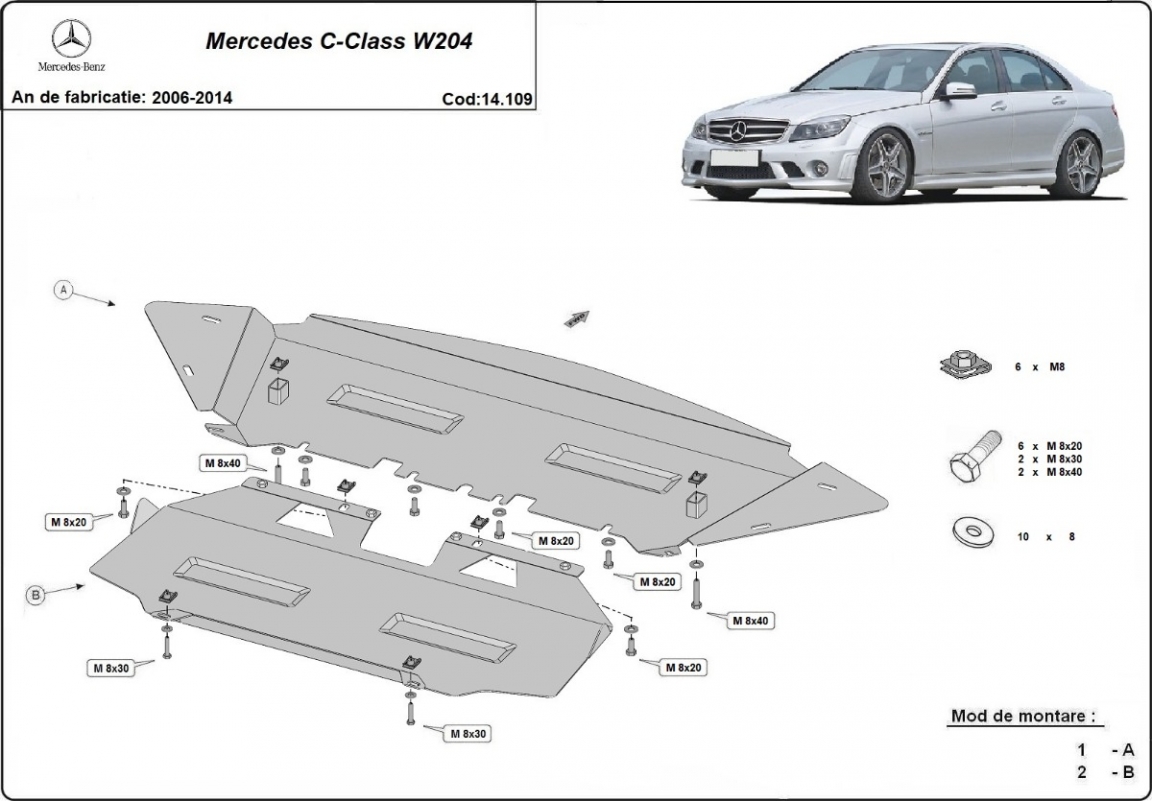 El cubre carter metalico es nuevo y se adapta perfectamente a todas las versiones de Mercedes C-Class W204 fabricadas entre 2006 y 2014. La placa protega los siguientes: motor, radiador, parachoques delantero Está preparado de chapa de Acero de 2 mm. Cerrojos, calces y todos los accesorios incluidos. Todas las placas son estrachadas con pintura de polvo anticorrosivo. Las placas del protección del motor son equipados con braceares soldados para resistir mejor a los impactos exteriores. |
