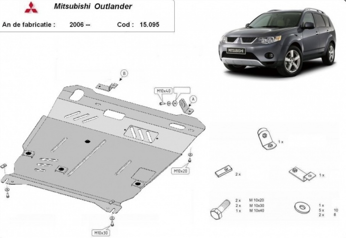 El cubre carter metalico es nuevo y se adapta perfectamente al Mitsubishi Outlander, con las siguientes versiones de motor / accionamiento: toate, fabricado entre 2006 y 2012. La placa protega los siguientes: motor, caja de cambios, radiador Montada con salida de petróleo descendido así que no es necesario el cambio del petróleo cuando se quita la placa. Está preparado de chapa de Acero de 2.5 mm. Cerrojos, calces y todos los accesorios incluidos. Todas las placas son estrachadas con pintura de polvo anticorrosivo. Las placas del protección del motor son equipados con braceares soldados para resistir mejor a los impactos exteriores. |