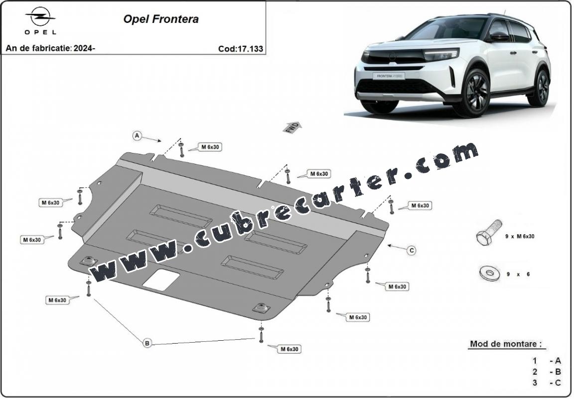El cubre carter metalico es nuevo y se adapta perfectamente al Opel Frontera, con las siguientes versiones de motor / accionamiento: toate, fabricado entre 2024 y 2025. La placa protega los siguientes: motor, caja de cambios Está preparado de chapa de Acero de 2 mm. Cerrojos, calces y todos los accesorios incluidos. Todas las placas son estrachadas con pintura de polvo anticorrosivo. Las placas del protección del motor son equipados con braceares soldados para resistir mejor a los impactos exteriores. |