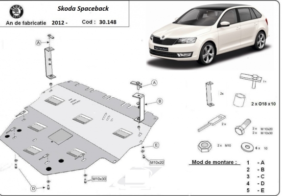 El cubre carter metalico es nuevo y se adapta perfectamente al Skoda Spaceback, con las siguientes versiones de motor / accionamiento: toate, fabricado entre 2013 y 2019. La placa protega los siguientes: motor, caja de cambios, radiador Montada con salida de petróleo descendido así que no es necesario el cambio del petróleo cuando se quita la placa. Está preparado de chapa de Acero de 2 mm. Cerrojos, calces y todos los accesorios incluidos. Todas las placas son estrachadas con pintura de polvo anticorrosivo. Las placas del protección del motor son equipados con braceares soldados para resistir mejor a los impactos exteriores. |