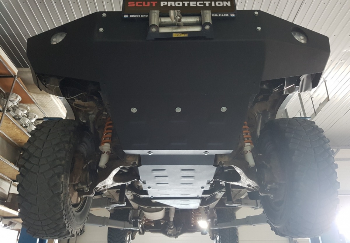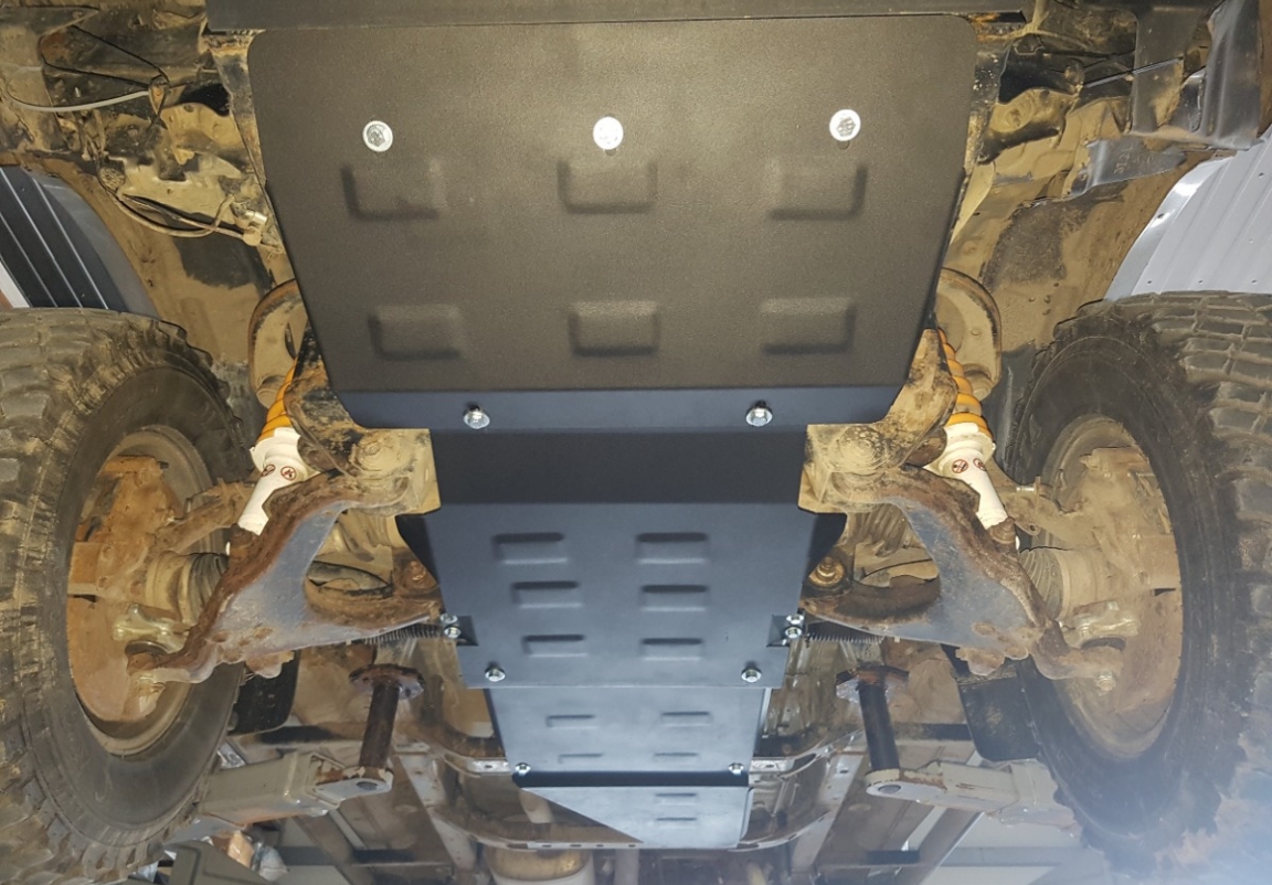 El cubre carter metalico es nuevo y se adapta perfectamente al Toyota Land Cruiser J90, con las siguientes versiones de motor / accionamiento: toate, fabricado entre 1995 y 2002. La placa protega los siguientes: motor, radiador, parachoques delantero Está preparado de chapa de Acero de 2.5 mm. Cerrojos, calces y todos los accesorios incluidos. Todas las placas son estrachadas con pintura de polvo anticorrosivo. Las placas del protección del motor son equipados con braceares soldados para resistir mejor a los impactos exteriores. |