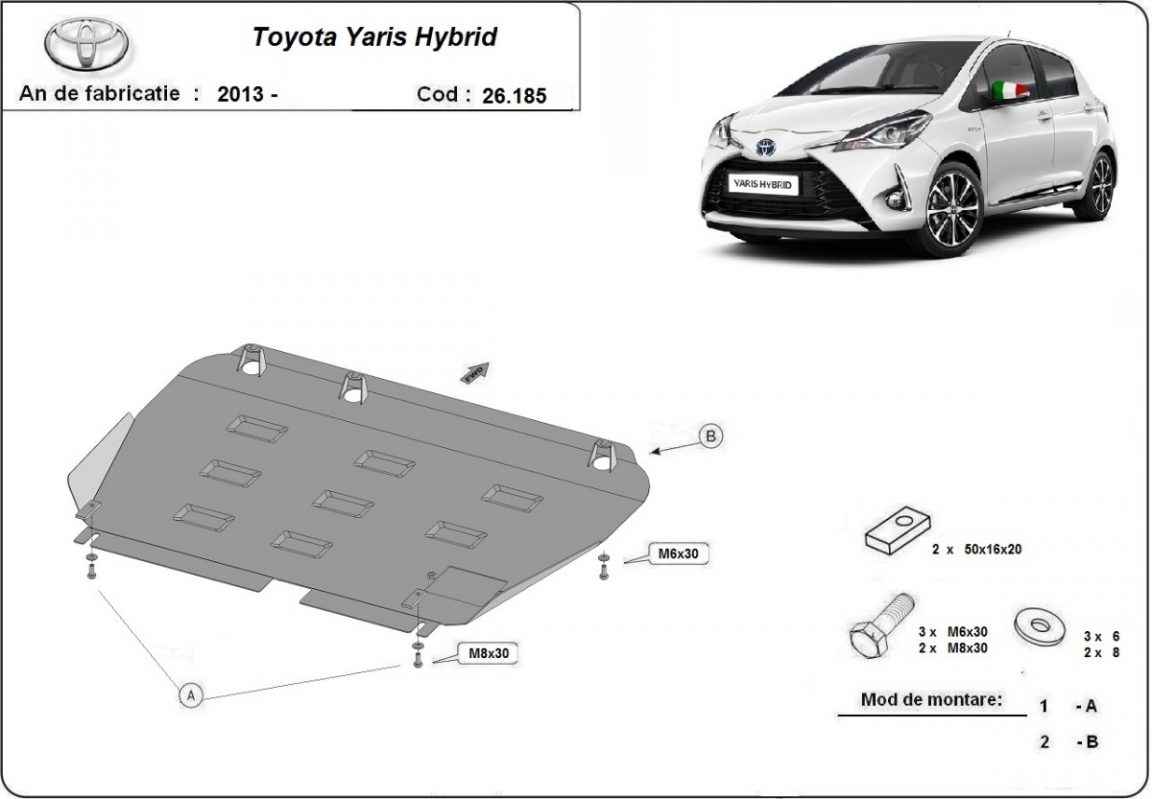 El cubre carter metalico es nuevo y se adapta perfectamente al Toyota Yaris Hybrid, con las siguientes versiones de motor / accionamiento: XP150, all, Hybrid, fabricado entre 2013 y 2021. La placa protega los siguientes: motor, caja de cambios, radiador Está preparado de chapa de Acero de 2 mm. Cerrojos, calces y todos los accesorios incluidos. Todas las placas son estrachadas con pintura de polvo anticorrosivo. Las placas del protección del motor son equipados con braceares soldados para resistir mejor a los impactos exteriores. |