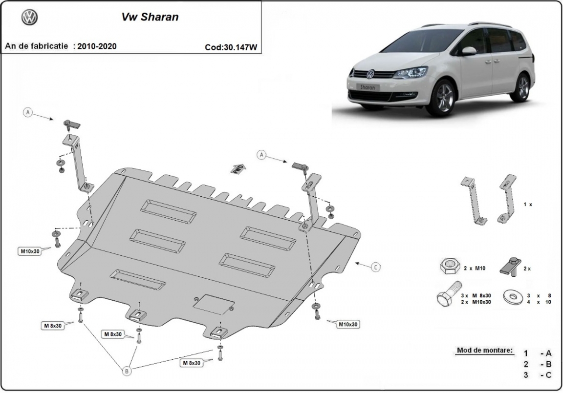 El cubre carter metalico es nuevo y se adapta perfectamente a todas las versiones de Volkswagen Sharan - Webasto fabricadas entre 2010 y 2020. La placa protega los siguientes: motor, caja de cambios, radiador, parachoques delantero Está preparado de chapa de Acero de 2 mm. Cerrojos, calces y todos los accesorios incluidos. Todas las placas son estrachadas con pintura de polvo anticorrosivo. Las placas del protección del motor son equipados con braceares soldados para resistir mejor a los impactos exteriores. |