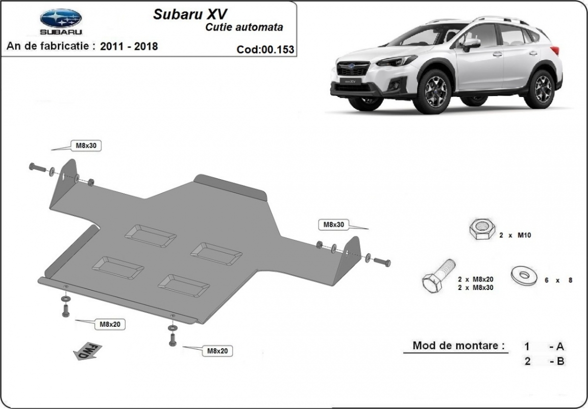 El cubre carter metalico es nuevo y se adapta perfectamente al Subaru XV, con las siguientes versiones de motor / accionamiento: toate, fabricado entre 2011 y 2018. La placa protega los siguientes: caja de cambios Está preparado de chapa de Acero de 2 mm. Cerrojos, calces y todos los accesorios incluidos. Todas las placas son estrachadas con pintura de polvo anticorrosivo. Las placas del protección del motor son equipados con braceares soldados para resistir mejor a los impactos exteriores. |