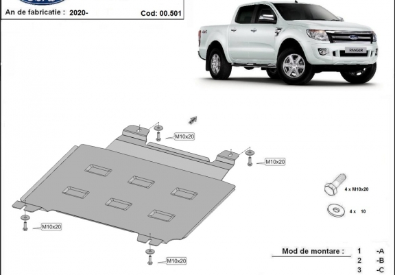 El cubre carter metalico es nuevo y se adapta perfectamente a todas las versiones de Ford Ranger fabricadas entre 2020 y 2023. La placa protega los siguientes: caja de cambios, caja de transferencia Está preparado de chapa de Acero de 2 mm. Cerrojos, calces y todos los accesorios incluidos. Todas las placas son estrachadas con pintura de polvo anticorrosivo. Las placas del protección del motor son equipados con braceares soldados para resistir mejor a los impactos exteriores. |