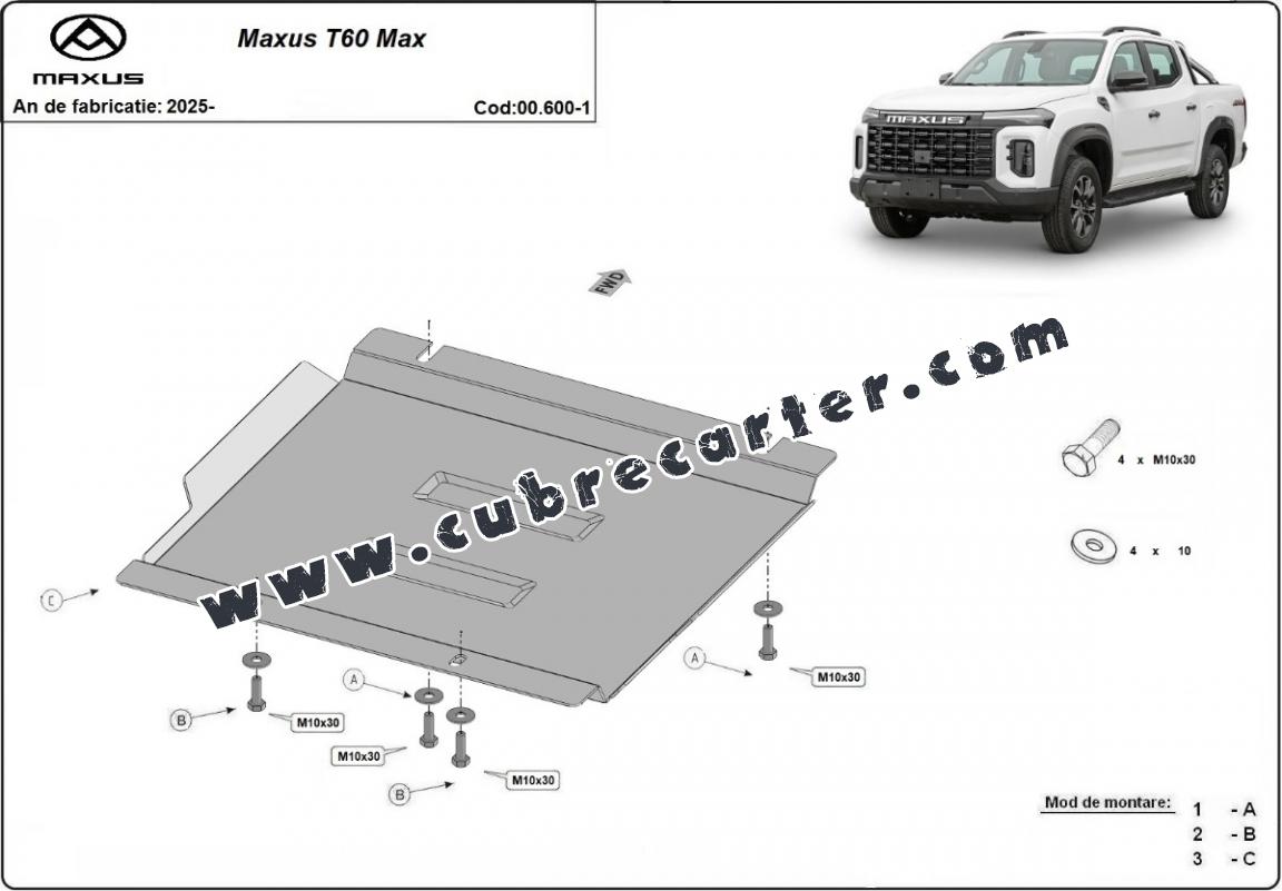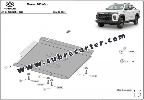 El cubre carter metalico es nuevo y se adapta perfectamente al Maxus T60 Max, con las siguientes versiones de motor / accionamiento: toate, fabricado entre 2025 y 2025. La placa protega los siguientes: caja de cambios Está preparado de chapa de Acero de 3 mm. Cerrojos, calces y todos los accesorios incluidos. Todas las placas son estrachadas con pintura de polvo anticorrosivo. Las placas del protección del motor son equipados con braceares soldados para resistir mejor a los impactos exteriores. |