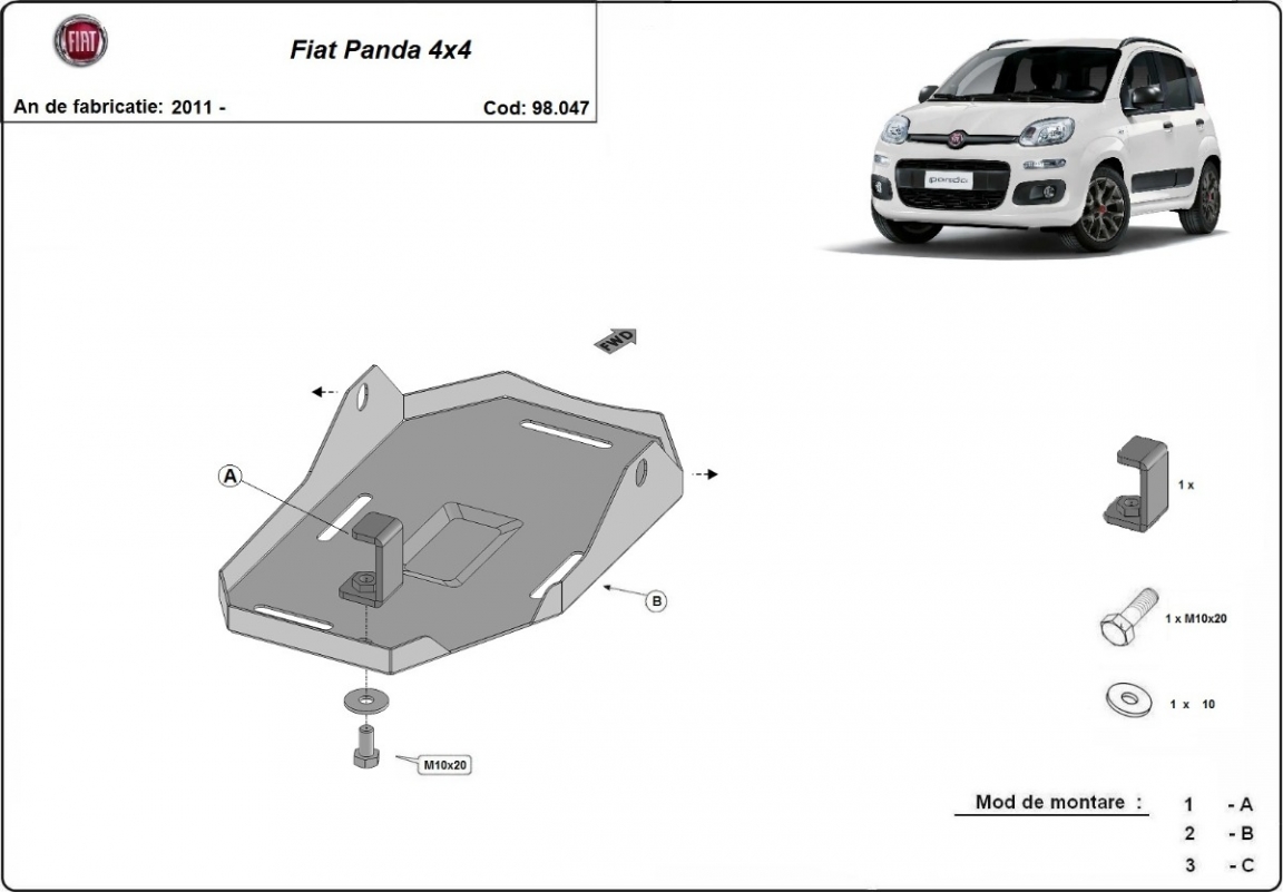 El cubre carter metalico es nuevo y se adapta perfectamente al Fiat Panda 4x4, con las siguientes versiones de motor / accionamiento: toate, fabricado entre 2011 y 2026. La placa protega los siguientes: diferencial trasero Está preparado de chapa de Acero de 2 mm. Cerrojos, calces y todos los accesorios incluidos. Todas las placas son estrachadas con pintura de polvo anticorrosivo. Las placas del protección del motor son equipados con braceares soldados para resistir mejor a los impactos exteriores. |