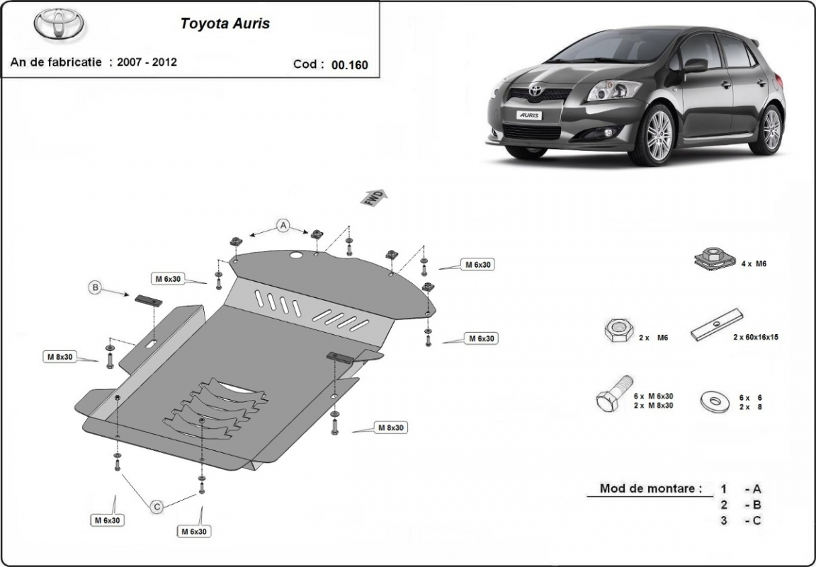 El cubre carter metalico es nuevo y se adapta perfectamente al Toyota Auris, con las siguientes versiones de motor / accionamiento: toate, fabricado entre 2007 y 2012. La placa protega los siguientes: Conversor catalítico Está preparado de chapa de Acero de 2 mm. Cerrojos, calces y todos los accesorios incluidos. Todas las placas son estrachadas con pintura de polvo anticorrosivo. Las placas del protección del motor son equipados con braceares soldados para resistir mejor a los impactos exteriores. |