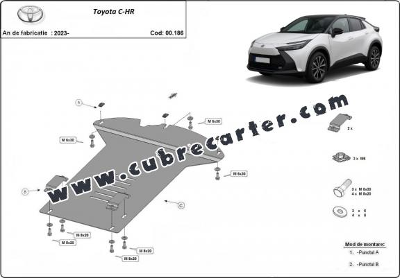 El cubre carter metalico es nuevo y se adapta perfectamente al Toyota C-HR, con las siguientes versiones de motor / accionamiento: toate, fabricado entre 2023 y 2025. La placa protega los siguientes: Conversor catalítico Está preparado de chapa de Acero de 2 mm. Cerrojos, calces y todos los accesorios incluidos. Todas las placas son estrachadas con pintura de polvo anticorrosivo. Las placas del protección del motor son equipados con braceares soldados para resistir mejor a los impactos exteriores. |