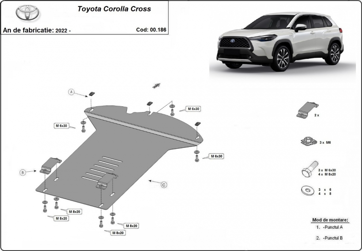 El cubre carter metalico es nuevo y se adapta perfectamente al Toyota Corolla Cross, con las siguientes versiones de motor / accionamiento: toate, fabricado entre 2022 y 2026. La placa protega los siguientes: Conversor catalítico Está preparado de chapa de Acero de 2 mm. Cerrojos, calces y todos los accesorios incluidos. Todas las placas son estrachadas con pintura de polvo anticorrosivo. Las placas del protección del motor son equipados con braceares soldados para resistir mejor a los impactos exteriores. |